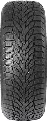 Шина оснащена системой евро-шипов (небольшой размер), которые позволяют прочно фиксировать пятно контакта на обледенелой дороге, предупреждая заносы. При этом, в виду своего небольшого размера и особого расположения, они не повышают шумность покрышки, поддерживая на высоком уровне ездовой комфорт. Направленный протектор имеет широкое центральное V-образное ребро, посредствам которого достигается стабильность управления при различных скоростных режимах. Помимо этого, наличие диагональных дренажных каналов способствует быстрому очищению области контакта. Данный фактор положительно сказывается на разгонно-тормозных характеристиках.